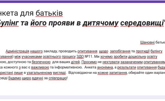 За результатами соціологічного опитування, встановлено, що протягом 2024/2025 н.р. в ЗДО №11 « Горбинка» не виявлено жодного випадку булінгу (цькування). Зазначене підтверджується на основі анкет – опитувань для батьків, які створені за допомогою google форм, які розміщуються на веб – сайті закладу. Також, слід зазначити , що в зазначений період […]