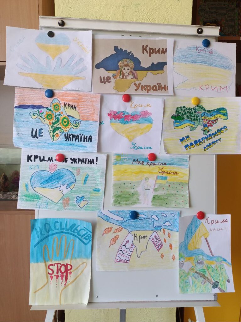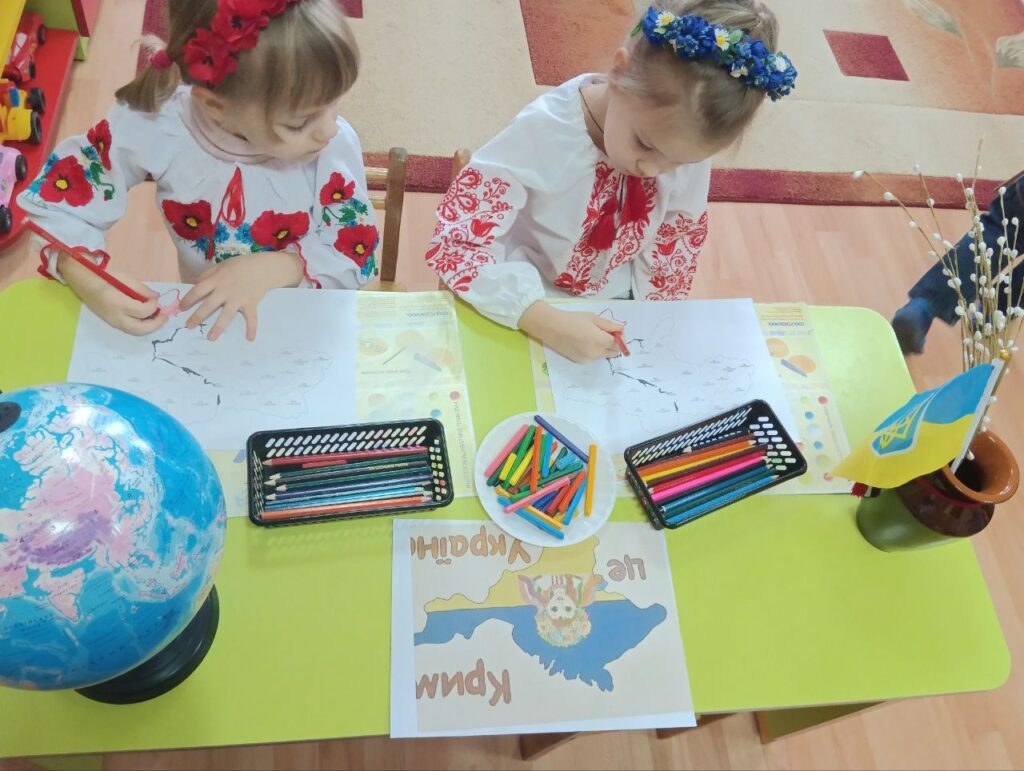 У групі старшого дошкільного віку, під час організованої діяльності, педагоги формували уявлення дітей про важливість Криму для України як невід’ємної її частини, демонстрували місце знаходження півострова на територіальній карті України. Ознайомлювали з основними визначними місцями , а саме: Генуезька фортеця у Судаку, Ялтинський ботанічний сад, замок – Ластівчине гніздо, набережна Ялти, історичні пам’ятки Бахчисарая, та морські узбережжя південного берега Криму.