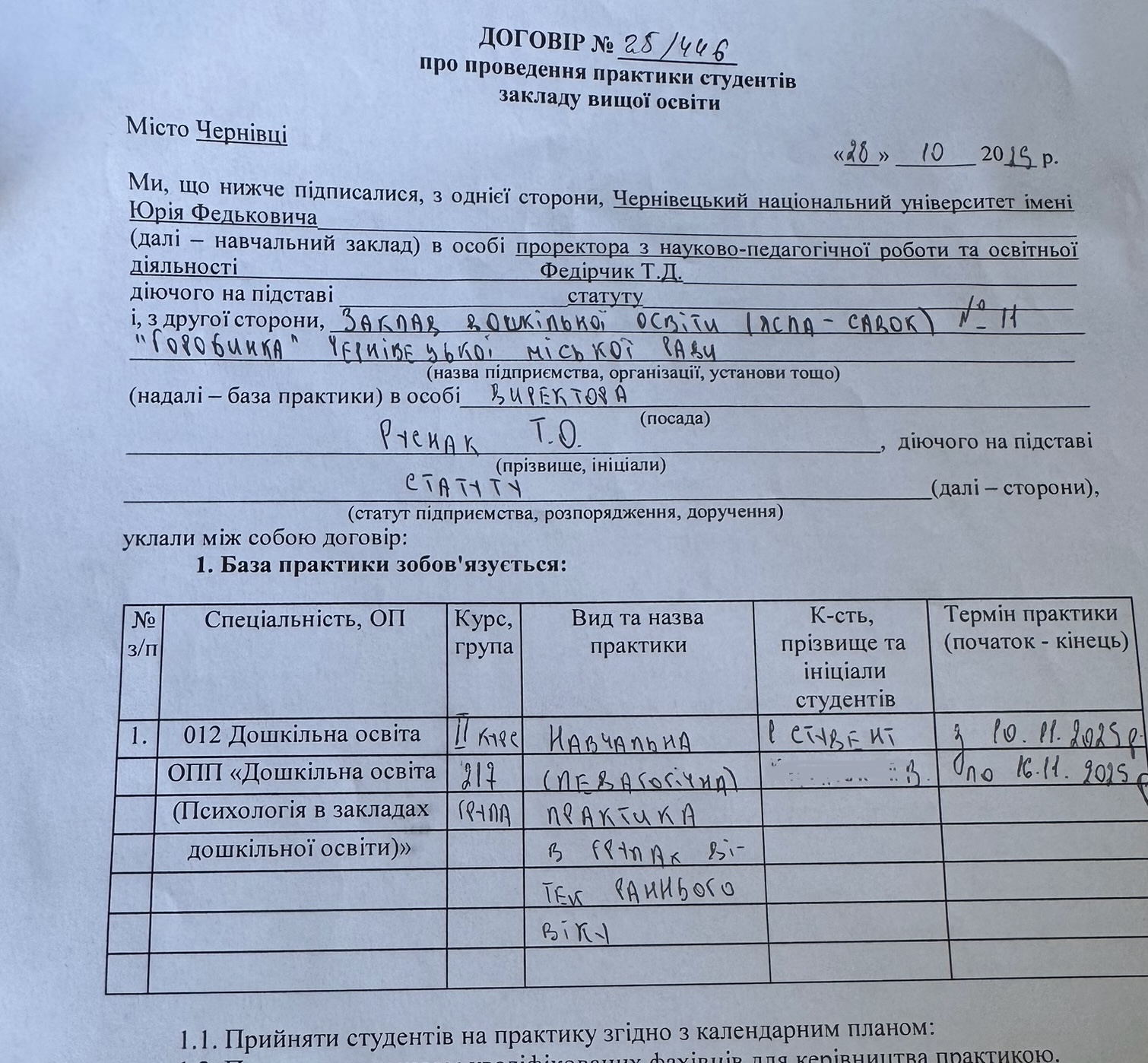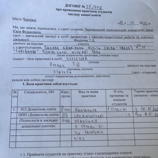 На підставі заключеного договору про співпрацю між ЗДО №11 “Горобинка” та ЧНУ ім.Ю.Федьковича з 10.11.2025 р. по 16.11.2025 р. на базі нашого […]