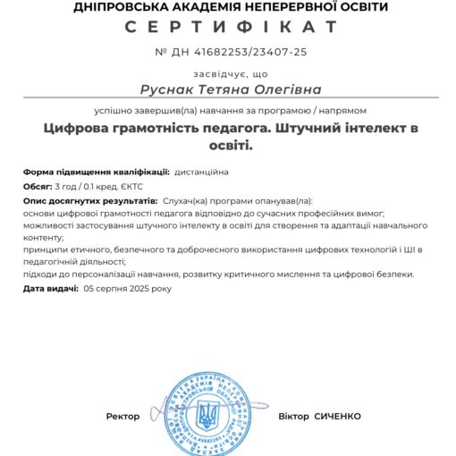 Успішне завершення навчання керівника ЗДО №11 “Горообинка” Тетяни РУСНАК у рамкаах реалізації освітнього проєкту “Управлінська академія освітнього менеджменту у 2024-2025 рр.(віділення новопризначених […]
